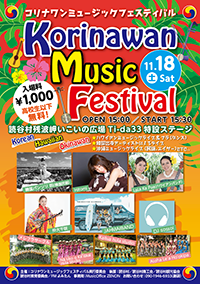 2017.11.18.SUN コリナワンミュージックフェスティバル 会 場:読谷村残波いこいの広場 Ti-da33 特設ステージ 時 間:OPEN 15:00~、START 15:30~20:00 料 金:1,000円 韓国、ハワイ、沖縄の音楽が集合したイベントです。 ◎ハワイアンミュージックライブ&フラ(ダンス) ◎韓国出身アーティストによるライブ ◎沖縄ミュージックライブetc