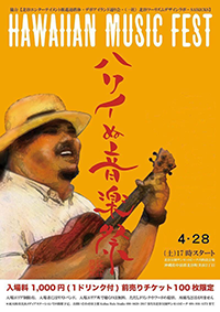 2018.4.28.SAT ハワイぬ音楽祭 HWAIIAN MUSIC FEST 会 場:北谷公園サンセットビーチ 時 間:開場 16:00 開演 17:00 チケットエリア内:1,000円(ワンドリンク付)限定100席 ※エリア外でも観覧可能 沖縄県内で活動するハワイアンバンド、ウクレレチームが集い。 夕日を眺めながらゆったりと音楽をお楽しみいただけます。 もちろんメレフラ大歓迎です。